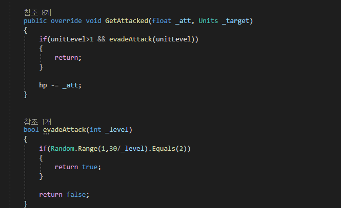 건물, 유닛을 한 함수에서 걸러내서 공격하는 것은 구현이 되었다. 그리고 병사가 Lv2 이상일 경우 레벨에 따른 확률로 ), 한 대 맞고, 반격을한다. (lv이 높을수록 발동 확률 ↑)