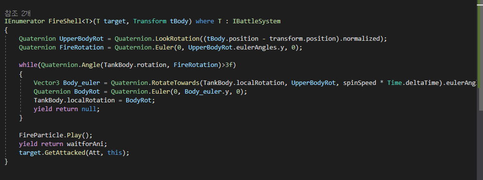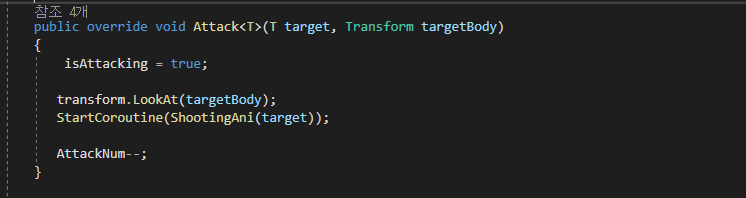 위에 Soldier.cs일부분 사진 속에 Attack도 인터페이스 를 제약으로 두는 일반화를 사용하고 싶었으나.