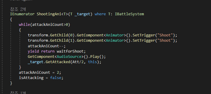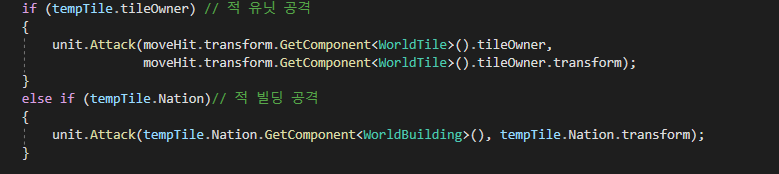 처음에 짠 공격 스크립트 구조는 유닛들이 공격 애니메이션을 취하지도 않고 빌딩 스스로 GetAttacked()를 하는 것이다.