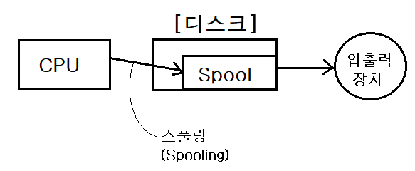 - 스풀링은 디스크 일부를 매우 큰 버퍼처럼 사용하는 기법이다.