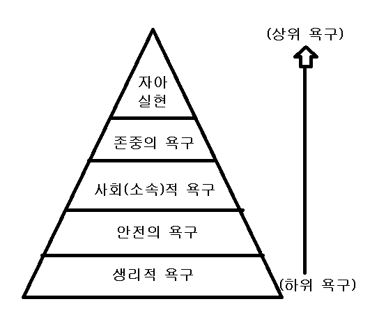 욕구는 단계가 생성이 되어있고 각 단계는 충족될 경우 다음 단계의 욕구가 생긴다는 이론.