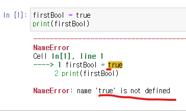 찾아보니 파이썬에서 True False 두 가지만 써야한다. 즉, 앞에 첫 문자가 대문자이어야한다.