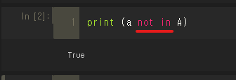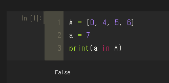 | a not in A | a가 A에 속하지 않으면 true 아니면 false |