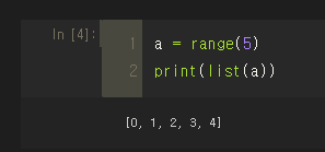 ■ 파라미터가 한 개인 range(a)는 0에서 a까지의 정수를 반환해주는 함수가 된다.