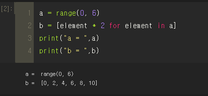 직관적으로 b = "a의 원소들을 모두 2를 곱한 값으로 리스트를 만들어줘" 라는 것이 되기 때문이다.