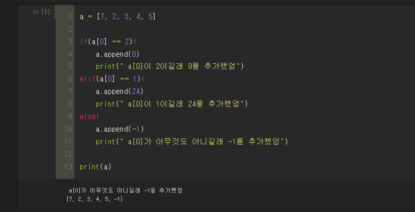 elif와 else 사용도 해봤다.