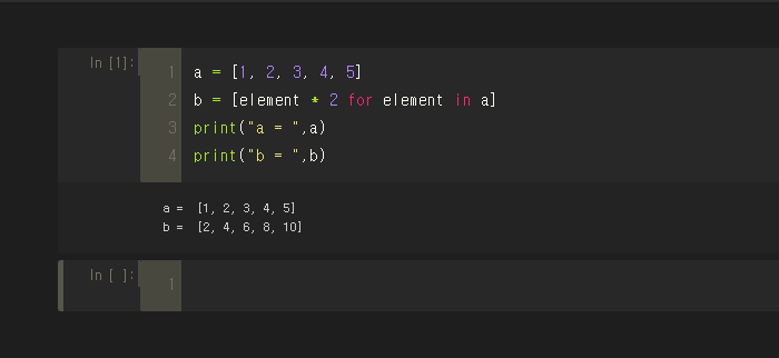직관적으로 b = "a의 원소들을 모두 2를 곱한 값으로 리스트를 만들어줘" 라는 것이 되기 때문이다.