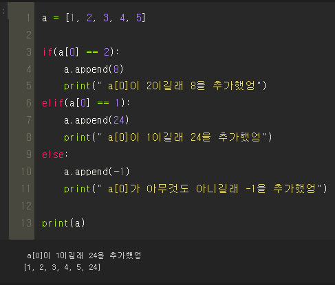 elif와 else 사용도 해봤다.