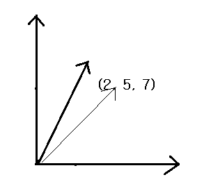 x = 2, y = 5, z = 7인 위 그림처럼 (2, 5, 7)은 3차원 공간으로 표현한다.