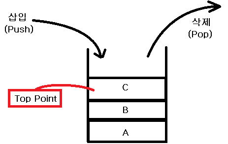 | * 스택 (Stack) 한쪽으로만 입/출력이 이루어지는 구조. 가장 마지막에 입력된 데이터가 가장 먼저 출력된다. ![]() * Top Point 가장 최근에 삽입된 자료 혹은 가장 먼저 삭제될 자료를 가리키는 스택 포인터이다. |