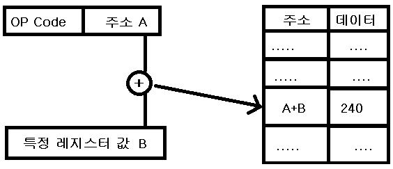 Operand부와 CPU의 특정 레지스터 값이 더해져서 유효 주소[실제 주소]를 계산하는 방식