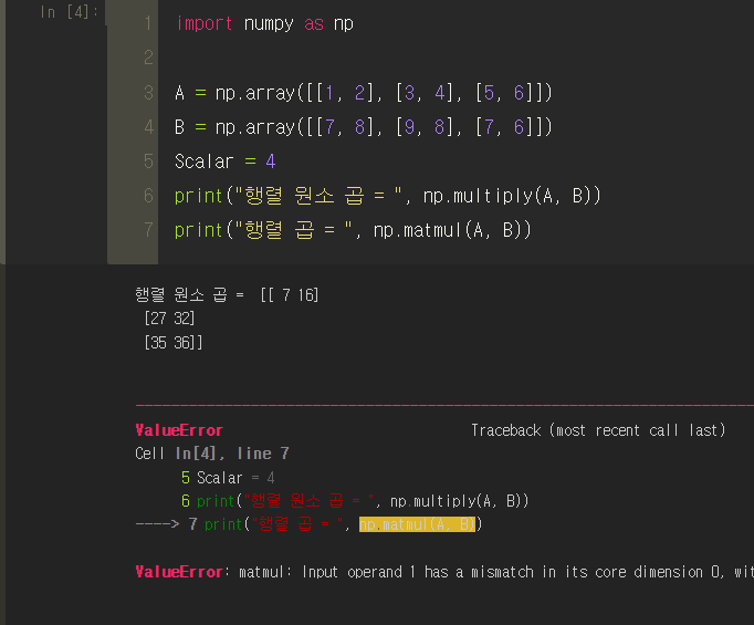 ■ 행렬의 원소곱 (넘파이)