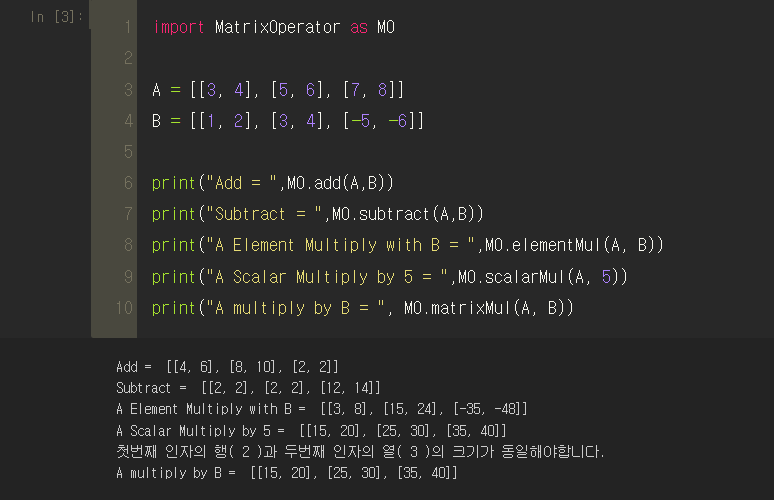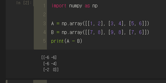 ■ 행렬의 뺄셈 (넘파이)