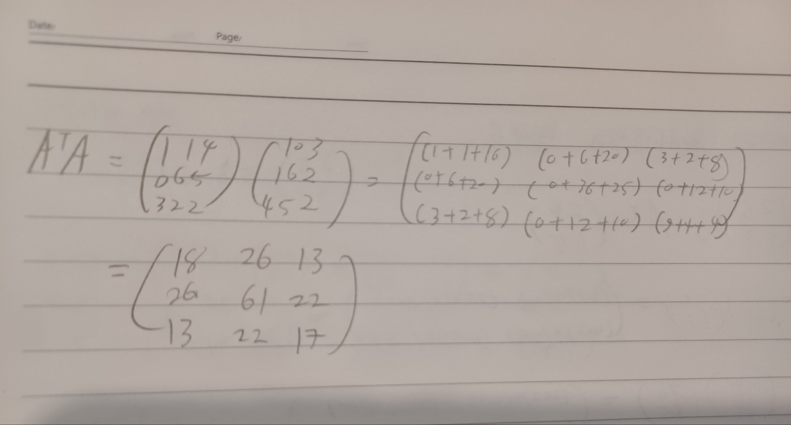 기존 행렬과 본인의 전치행렬 간의 행렬 곱은 대칭 행렬을 도출한다. ★ 선형대수를 공부하다보면 이 형태를 많이 보게 된다고한다. ![]() |