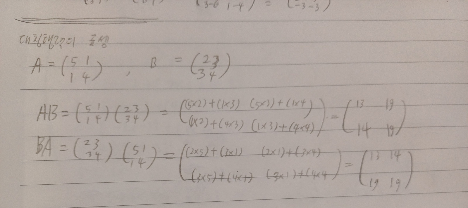 | 대칭 행렬 간 행렬 곱 != 대칭행렬 (AB, BA) |