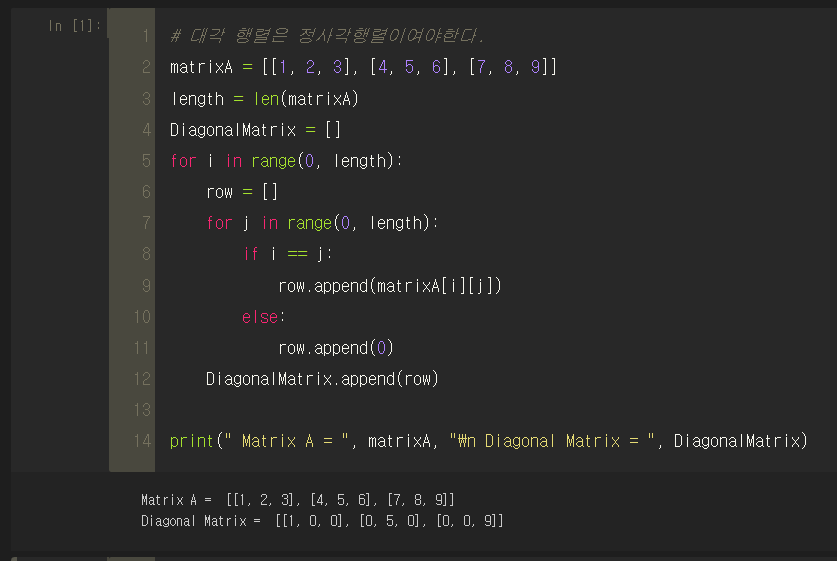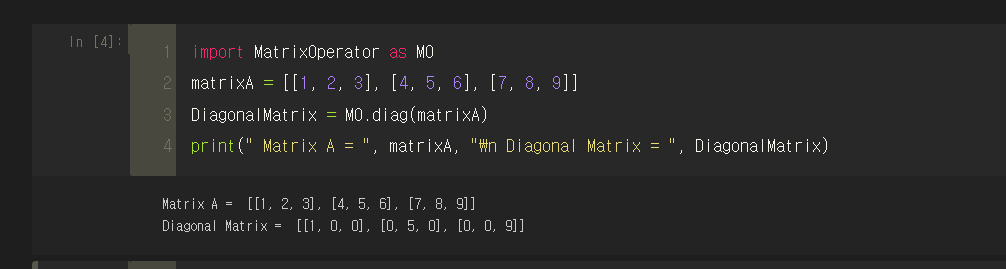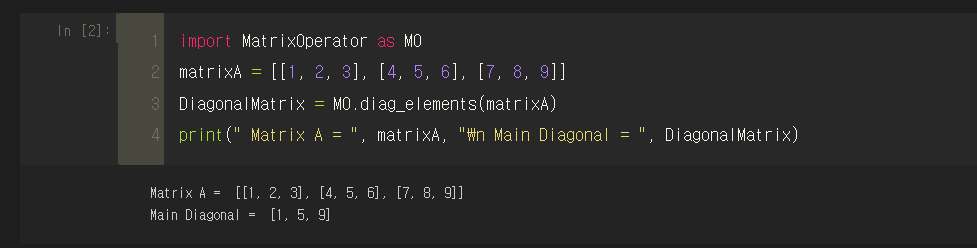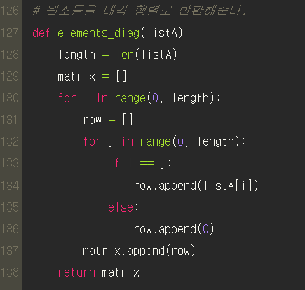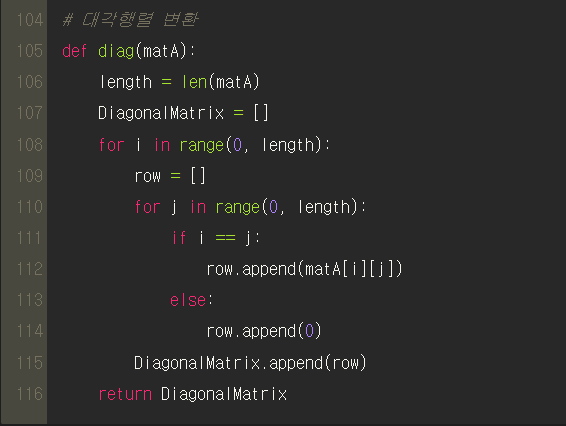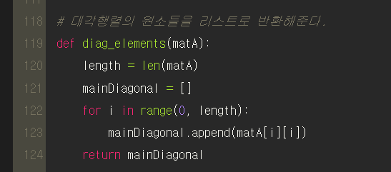 대각 행렬의 주 대각 원소(Main Diagonal)을 반환해주는 함수 또한 추가했다.