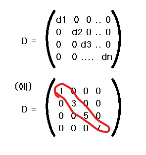 이같은 행렬을 대각 행렬이라고 한다. 보통 'D'라고 표시한다.