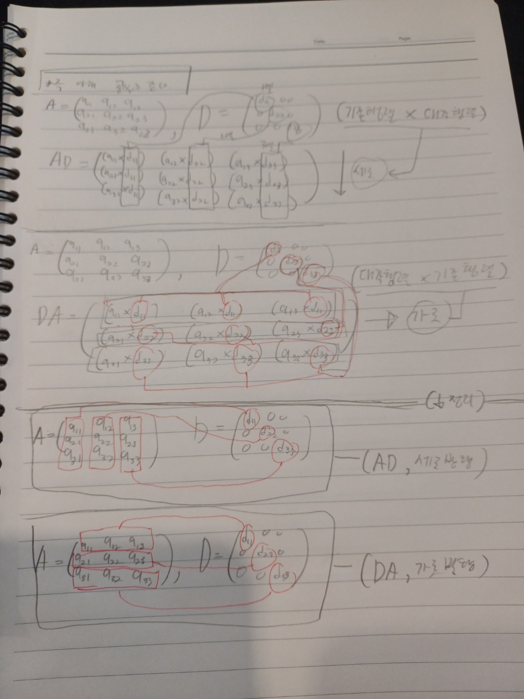 [기존 행렬과 대각 행렬 간의 행렬 곱]