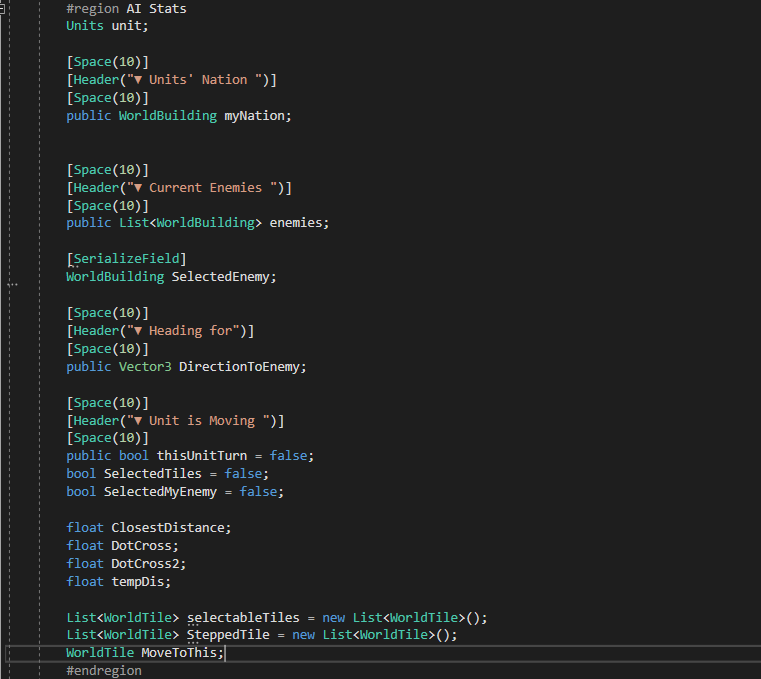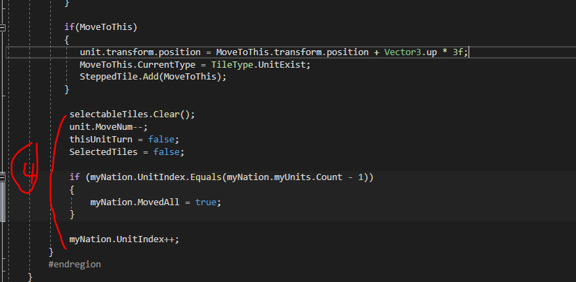 1. 마지막 유닛이 이동을 마치면 자국의 이동 통제용 Bool값을 true로 만들어야 했는데, 처음에 다른 방식으로 하려다 미처 수정하지 못한, 실수로 유닛의 소유 국가를 static으로 뒀었다. 당연히 true로 안 바뀌어서 첫 번째 유닛이 이동을 하고 다음 번째 유닛에게 움직일 권한을 줘야 했는데 넘어가질 못했었다.