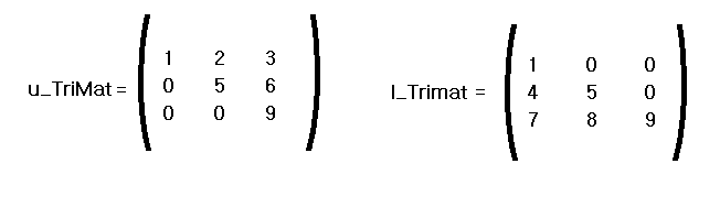 위 두 종류의 행렬은 서로 간의 전치 행렬이 된다. 하삼각행렬의 전치 행렬은 상삼각행렬이 되는 것이고, 반대로 상삼각행렬의 전치 행렬은 하삼각행렬이 된다.
