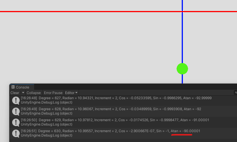 추가로 atan2함수를 통하여 실제 각도(Degree)가 얼마나 되는지 구하고자 하였다.