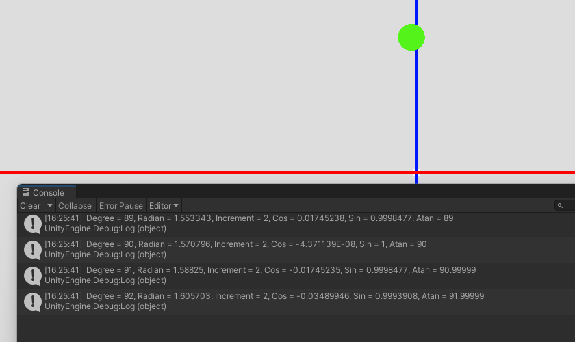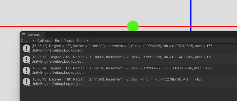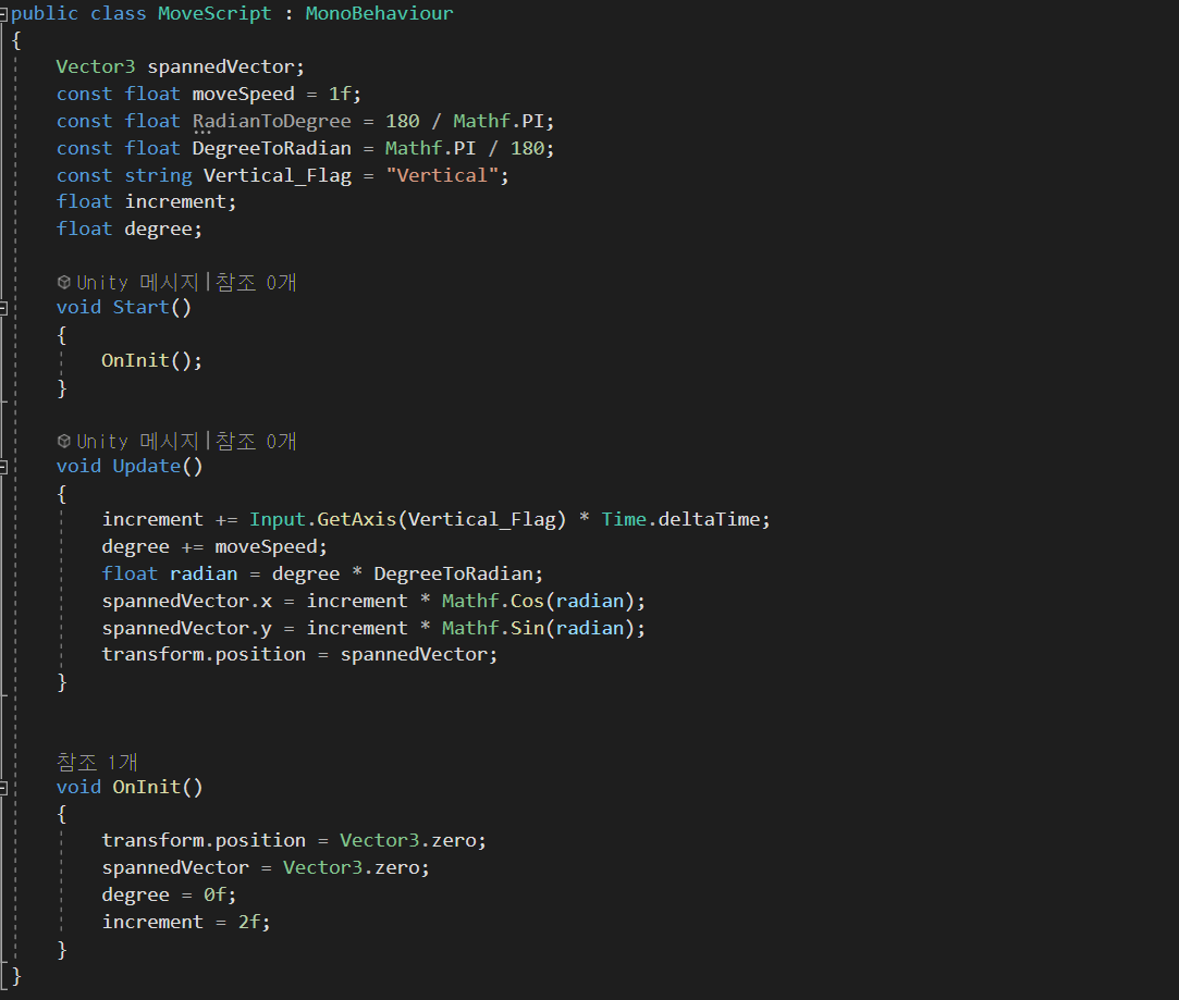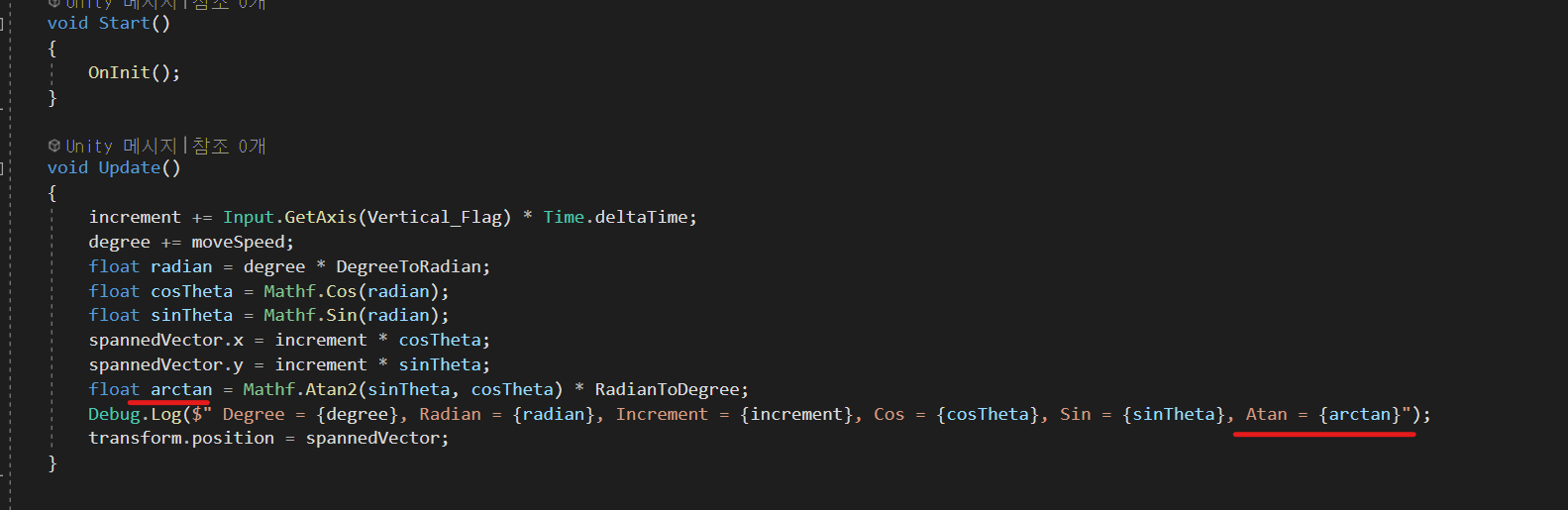 앞서 공부했던 내용을 토대로 유니티에서 기본적인 벡터의 회전 변환을 구현하였다.