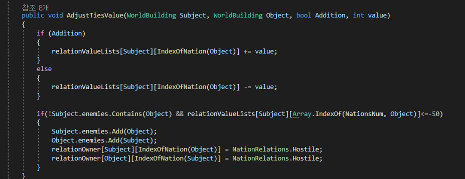 | [Day8-1] 외교 관계 랜덤 적대 관계 형성 (0) | 2021.07.19 |