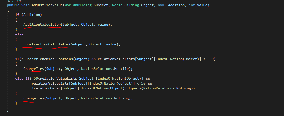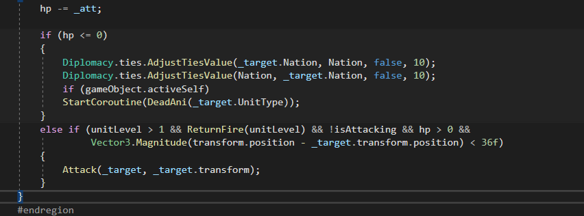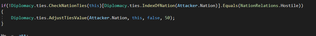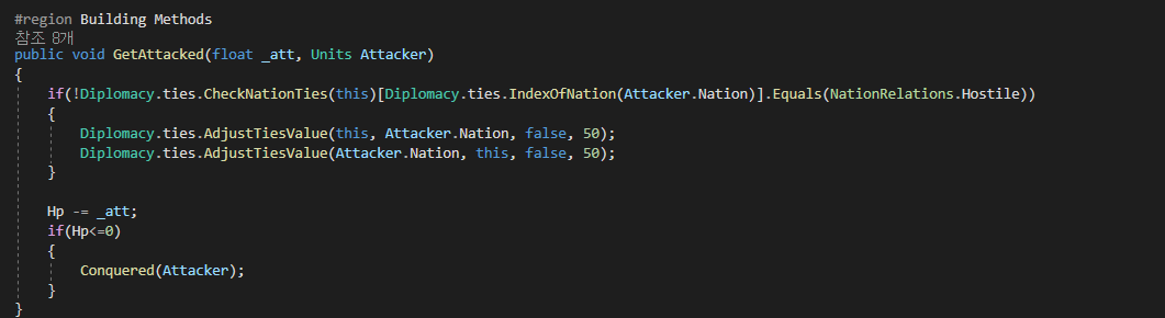 만약 적국이 아닌 국가(Nothing 혹은 Ally)가 자국(건물)을 공격(1회)한다면 우호도가 -50이 떨어지게 하였다.