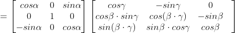 Ylocal = (-cosα sinγ + sinα sinβ cosγ, cosβ cosγ, sinα sinγ + cosα sinβ cosγ)