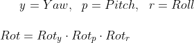 보편적으로 정해진 순서가 있는데 z -> x -> y 축 순서대로 회전을 적용해야한다. 이는 언리얼과 유니티 등 상용 엔진에서 도 적용되어있는 순서다. 이를 회전 방향에 따른 명칭으로 치환하면