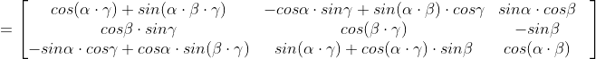 Xlocal = (cosα cosγ + sinα sinβ sinγ, cosβ sinγ, -sinα cosγ + cosα sinβ sinγ)