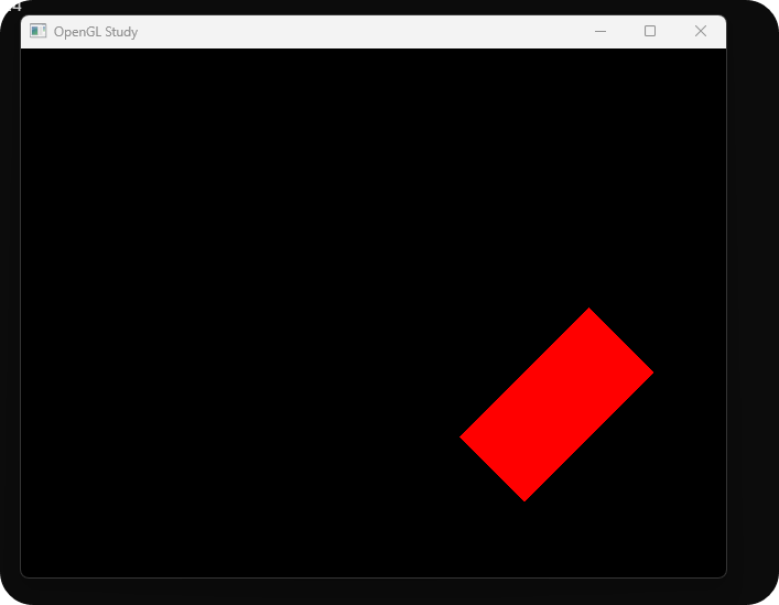 코드는 3차원 오브젝트 관련하여 작성하였지만 2차원 직사각형을 렌더링 하였기 때문에 다음에 3차원 오브젝트를 그려낼 때 Roll, Pitch, Yaw 세 가지 회전을 모두 이미지를 첨부할 예정이다.