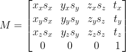 먼저 모델 행렬(Model Matrix 혹은 World Transform Matrix라고 칭함)은 아래와 같이 구성되어있다.
