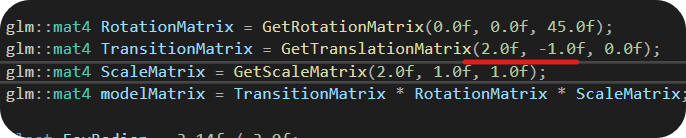 먼저 이동 변환 행렬을 구현해봤다. mat4의 생성자에 행렬의 요소들을 넘겨줬었다. 하지만 glm의 Matrix는 열벡터를 기준으로 하기 때문에 이를 전치한 후에 사용할 필요가 있었다.