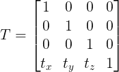 | 전치 이전에 이동변환 행렬의 모습 | 전치 이후에 이동변환 행렬의 모습 |