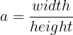 그리고 초점거리와 같이알아야 하는 것은 종횡비(Aspect Ratio)이다. NDC는 1:1 의 크기를 갖는 정사각형이지만, 우리 컴퓨터의 스크린은 1:1의 길이를 갖고 있지 않기 때문이다. 그러므로 물체를 올바르게 투영해주고 싶다면 가로세로비율에 맞게 변환해줘야한다. 이를 변수 a라고 하면 종횡비는 아래와 같다.