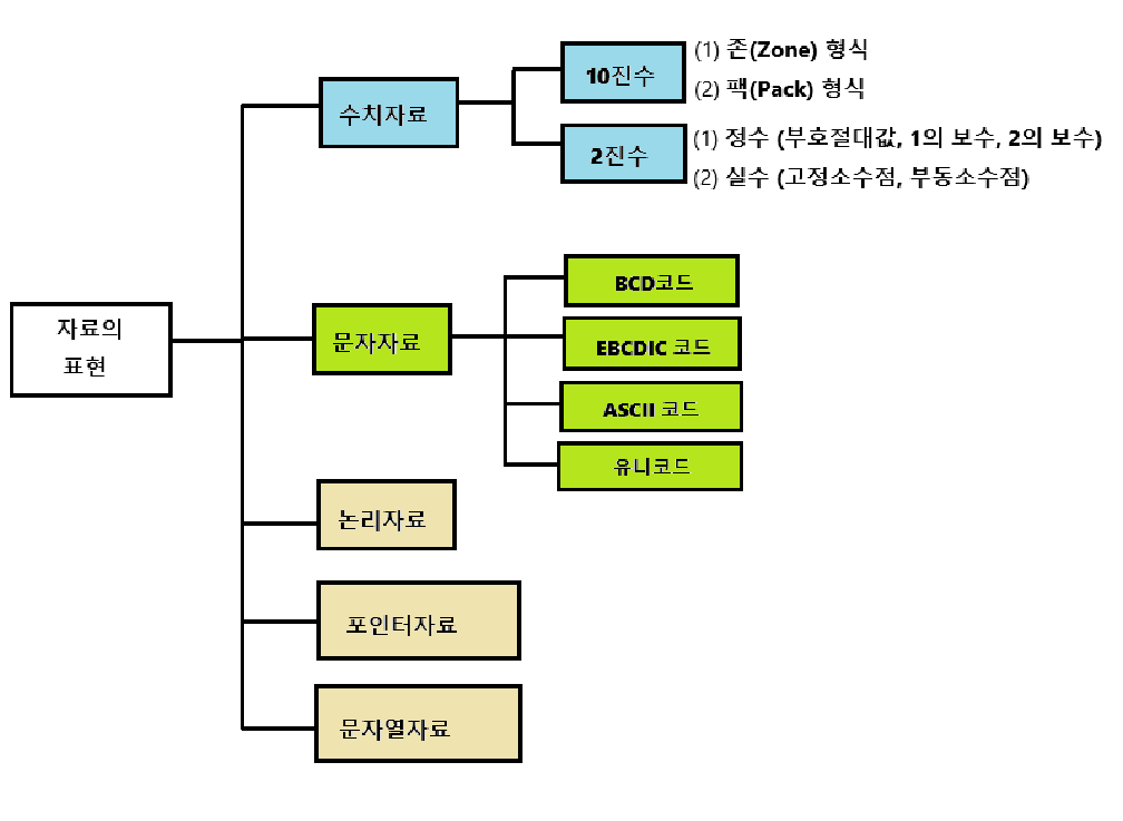 컴퓨터에서 자료를 표현하는 방식은 여러 가지다.이에 대표적으로 몇 가지가 있는데 아래와 같다.