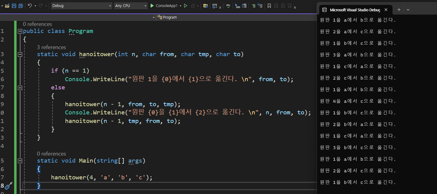 하노이탑 문제는 순환 호출이 가장 잘 적용이 된 문제이다.