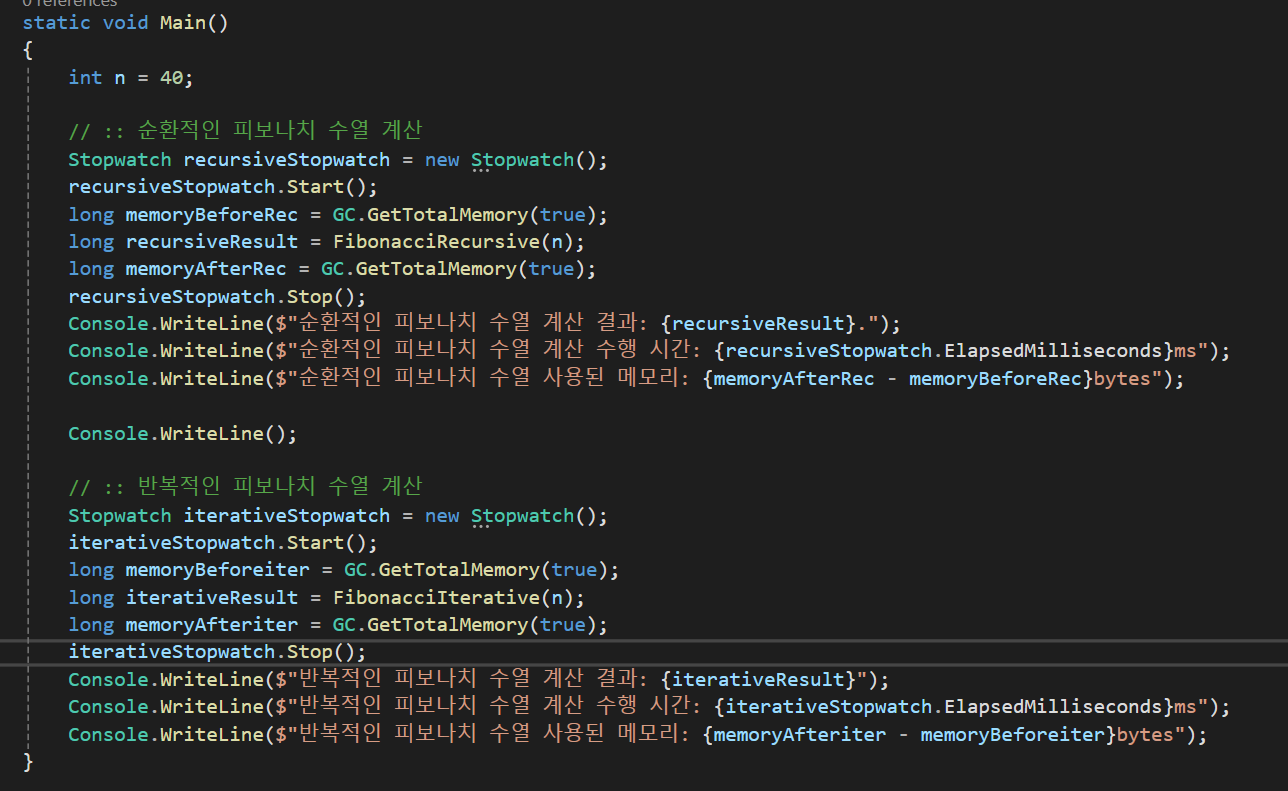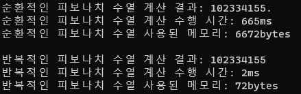 이로 인하여 피보나치 수열은 Iterative 기법이 더욱 효과적인 것을 알 수 있었다.