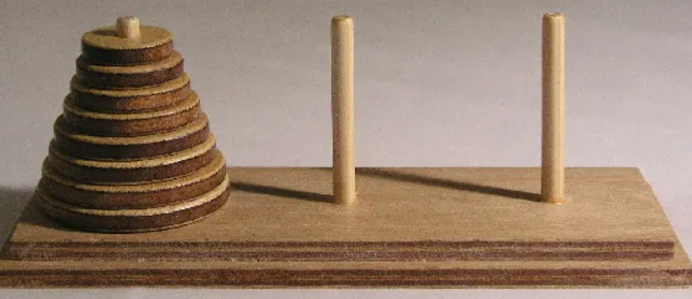 아래와 같이 왼쪽 막대에 있는 원판 n개를 가장 오른쪽 끝에 위치한 막대로 옮기는 것