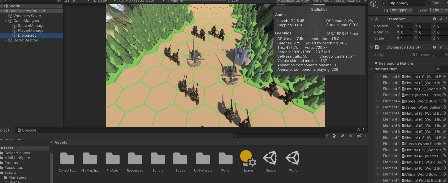 씬 체인지를 하면서 Diplomacy에 등록되어있는 국가들이 없어지기 때문에 Diplomacy.cs안의 데이타들이 다 날라간다.
