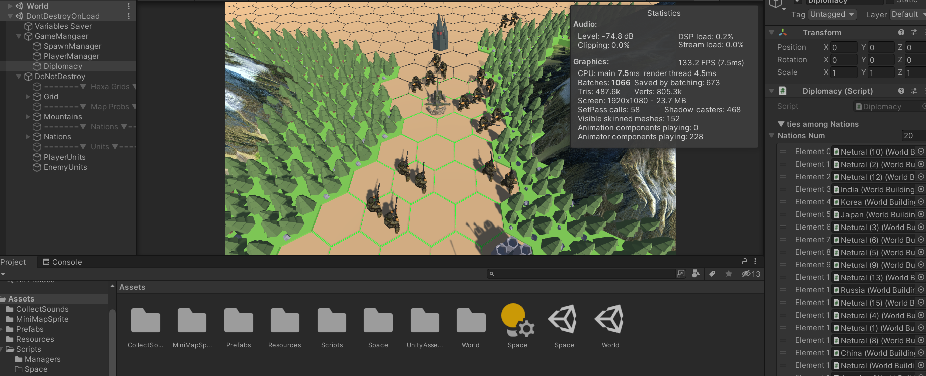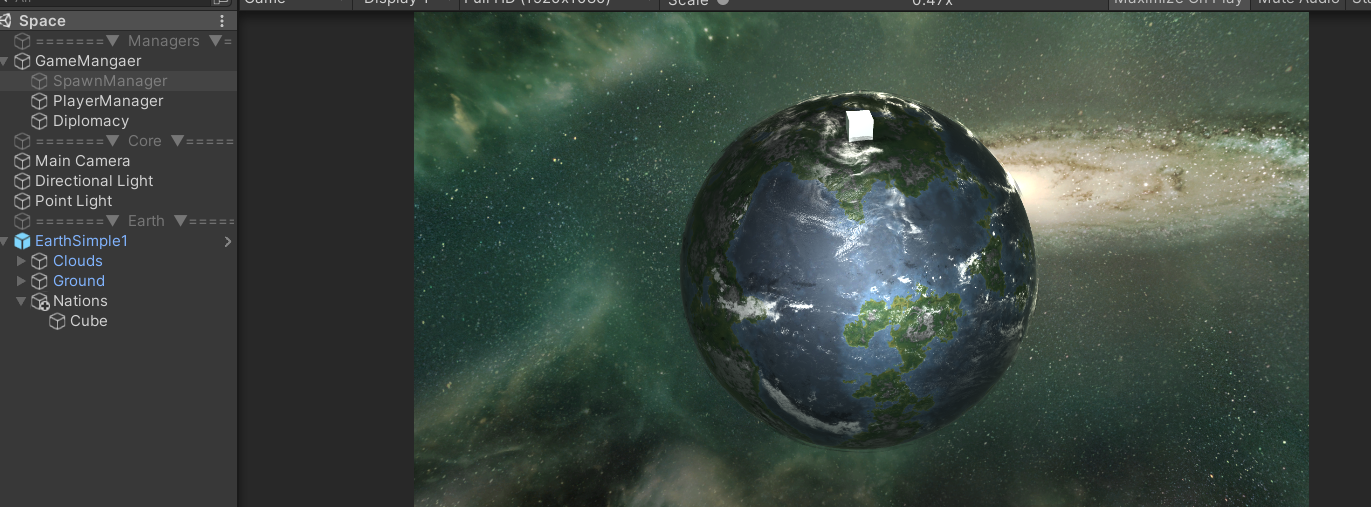 ▲ 이것들 먼저 할려고했었으나. Space 씬을 구상하고 플레이어가 '국가를 선택'하는 것을 먼저 구현하는 것이 좋을 것 같다는 생각이 들었다.