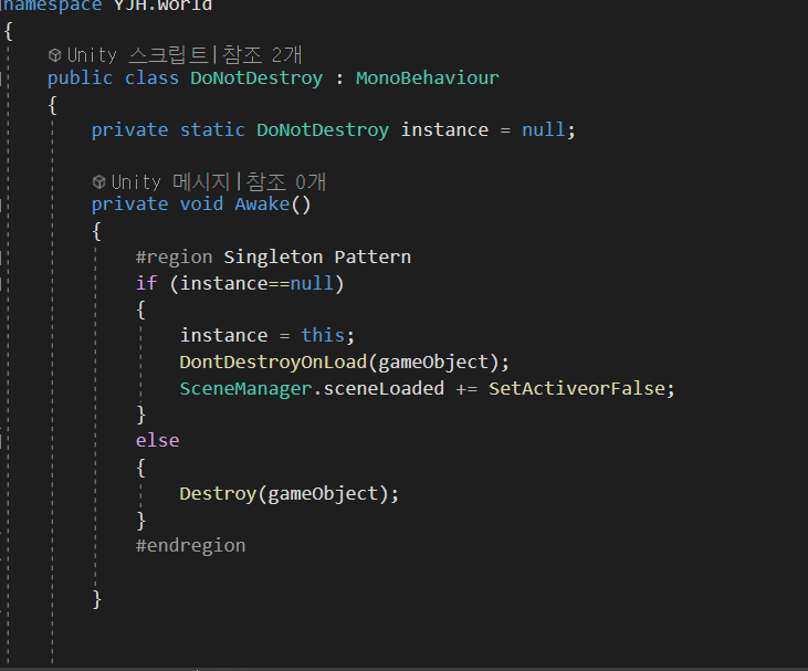 바로 싱글톤 패턴만 들어있는 스크립트를 짠 다음 내가 원하는 오브젝을 한 곳에 모아서 스크립트를 씌어줬다.