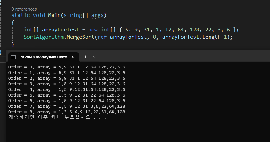 [병합 정렬의 분할 정복 과정]