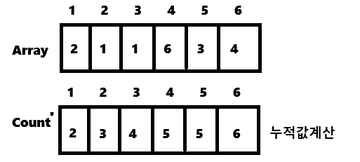 배열 Count의 각 인덱스에 해당하는 값을 이전 인덱스의 값과 누적하여 새로운 배열 Count'를 작성하는 것이다.