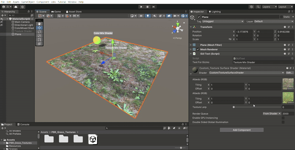 Lerp함수를 활용하여 Texture1과 Texture2를 선형적으로 섞어 사용하였다.