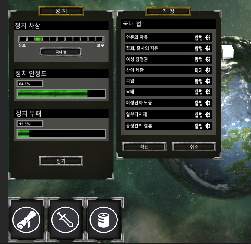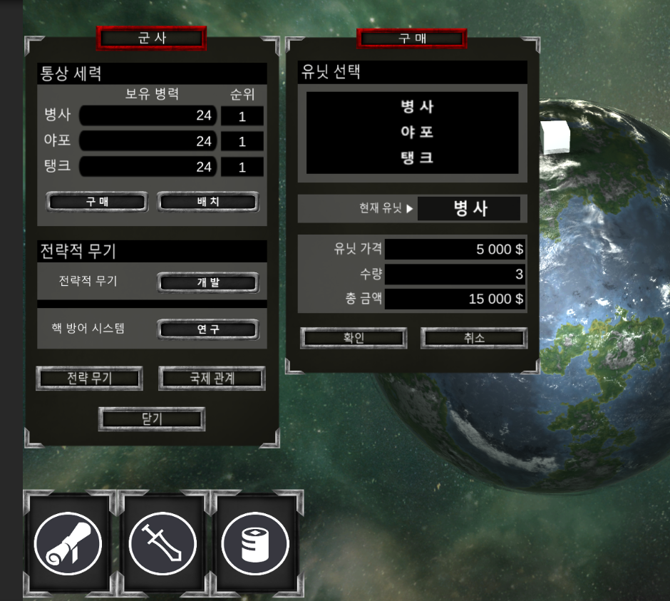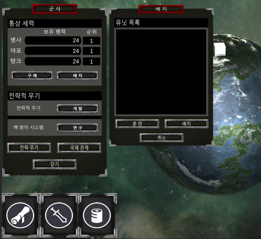 좌측 하단 아래 UI 버튼 3개가 있다.