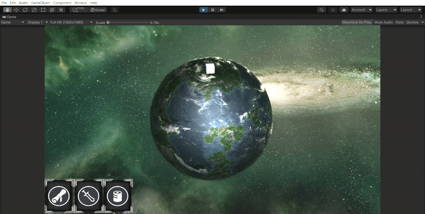 Space씬에서는 UI 버튼 클릭으로 진행되기 때문에 중요한 기능들을 구현하려면 일단 큰 틀로 UI를 잡아놔야 할 것 같아서 UI를 먼저 꾸미고 배치를 하였다. 에셋 두세 개를 받고 색깔을 바꿔가며 조합을 하면서 만들었다.