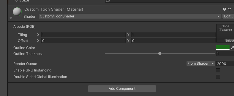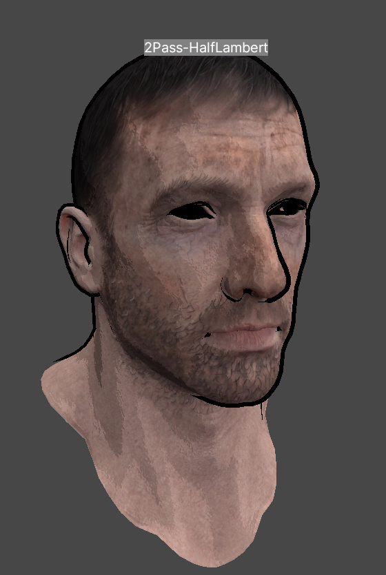 이제 이러한 음영에다 1st Pass인 아웃라인을 적용한 뒤 Normal 맵과 MainTexture의 Albedo를 적용해봤다.