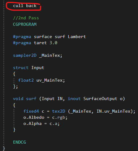 다시 본론으로 돌아와서 2nd Pass 이전에 cull back 키워드를 추가해주면